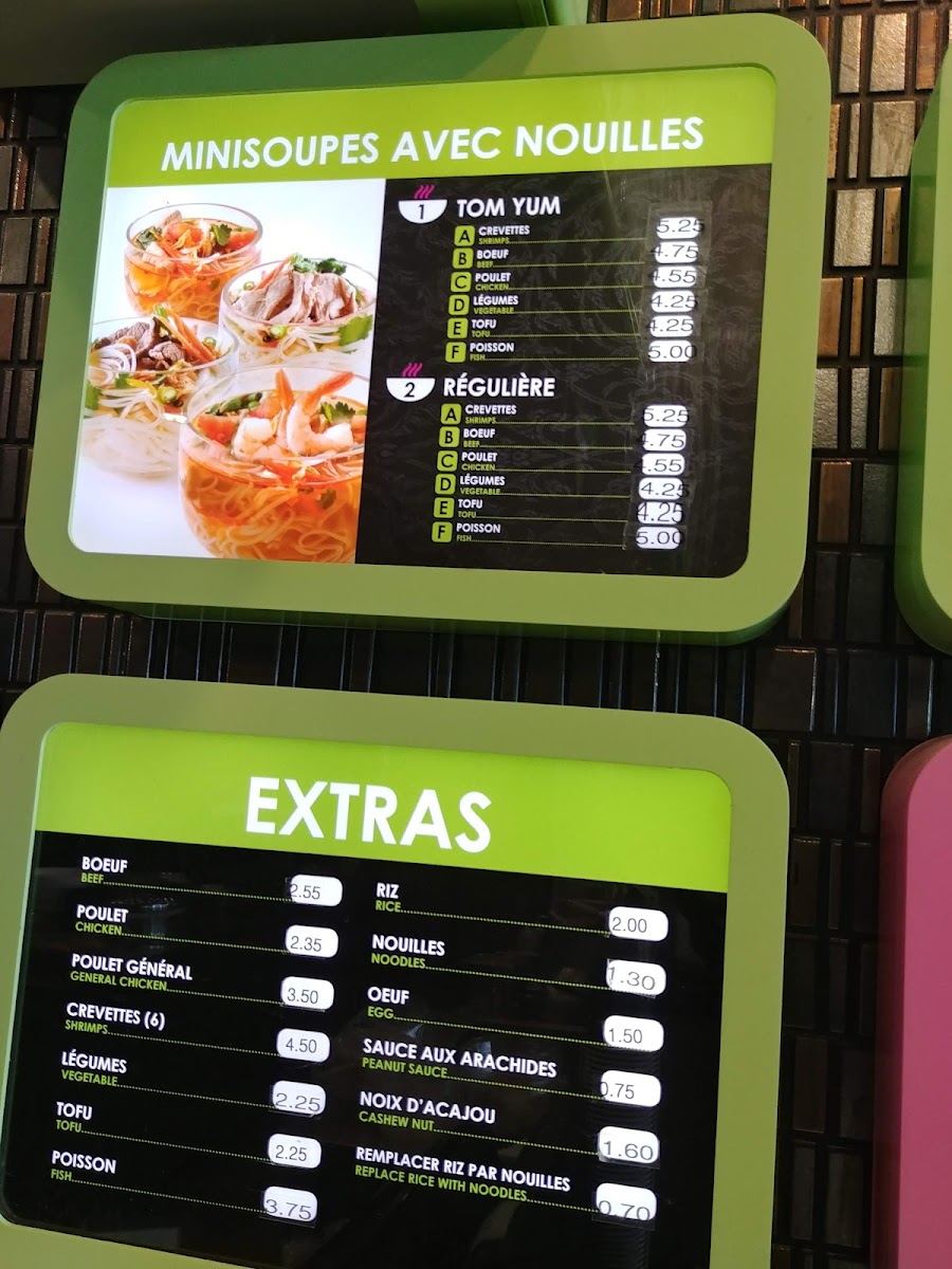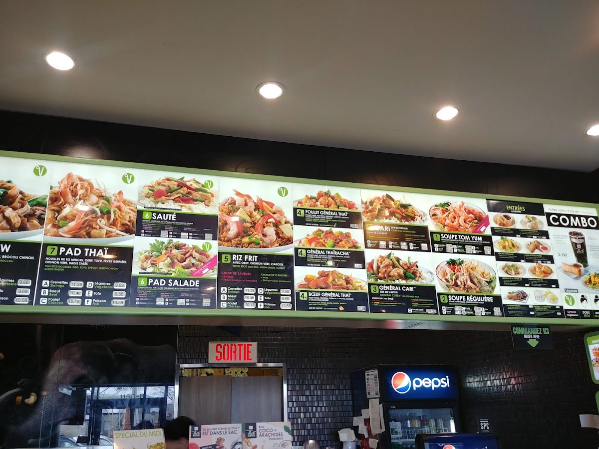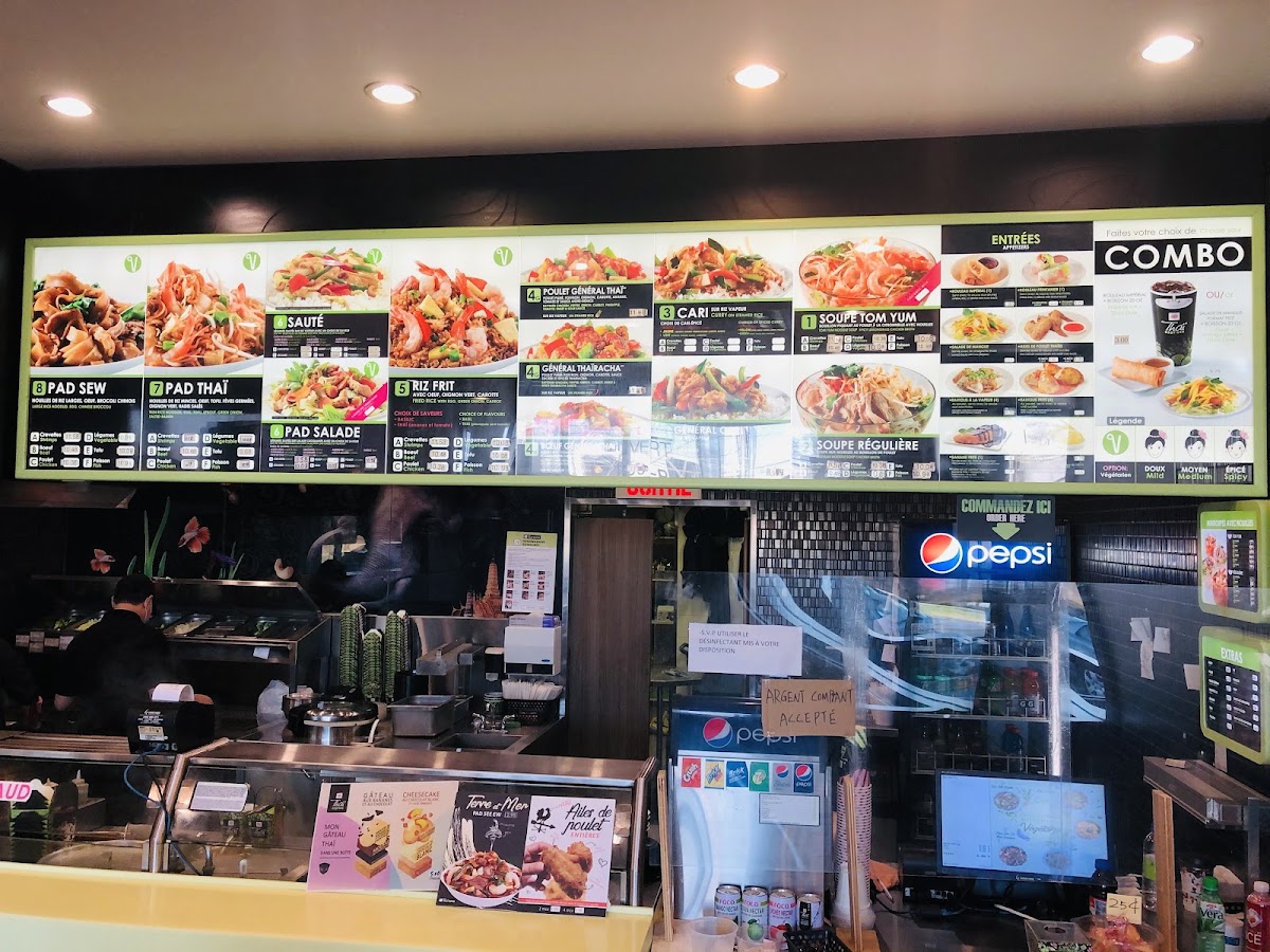 The menu also offers a variety of soups, salads, signature Thai dishes, gluten-friendly options, vegan dishes, combos, and desserts. From the fragrant Thaï Soup to the Vegan Pad See Ew, there's something for everyone at Thai Express 1150 B Rue Volta.